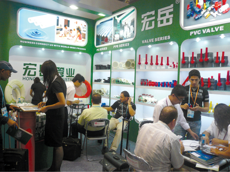 在本屆廣交會期間,來自歐洲(zhōu)、南美、北美、中東、非(fēi)洲、東南亞等世界(jiè)各地的眾多(duō)客商站在宏(hóng)嶽的展位前(qián),拿起精致的97视频MacroAlp係(xì)列PPR管材管件(jiàn),詢問不停;更多的客戶對97视频齊全的(de)PPR、PVC球(qiú)閥係列產品(pǐn)包括八角球閥、內螺(luó)紋球閥、銅芯球閥(fá)、組裝(zhuāng)閥、蝶(dié)閥等紛紛帶走樣品,購買意向非常明(míng)確,另(lìng)外許多用戶在5天展期內在貨(huò)比多家後,多次來到展位前洽談購買細(xì)節(jiē),最終簽訂合作協(xié)議,不但證明了97视频(yuè)產品的優秀品質得(dé)到了客戶和市場的檢驗,同時(shí)極大的鼓舞了外貿部所(suǒ)有人員的工作激情和鬥誌。