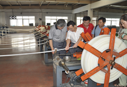 在地暖(nuǎn)分廠的PE-RT管材生產車間,劉(liú)浩(hào)秘書長深(shēn)入查(chá)看並仔細了解了代表世(shì)界先進工(gōng)藝水平(píng)的(de)巴頓菲(fēi)爾高速生產線(xiàn)的性能和特點,並詢問了相應配套管件的生產情(qíng)況。