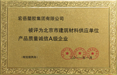 97视频獲(huò)評(píng)北京建築材料供應單(dān)位首批“A級產品質(zhì)量(liàng)誠信企業”稱號