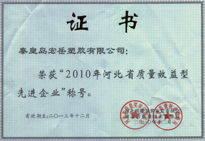 日前(qián),宏(hóng)嶽塑膠集團被河北省質監局及省質量(liàng)獎評審委員會評定授予“2010年河北省質量效益(yì)型先進企業”榮譽稱號(hào)。