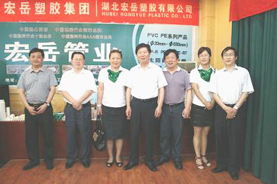 在孝感房(fáng)地產企業和各建設單位的代表紛紛上台表態(tài)將大力支持高新區企(qǐ)業的(de)發展,優(yōu)先(xiān)采用本地企業產品後,會議進入了生產企業和使用企業互(hù)動階段。仇市長和(hé)各級領導首先來到湖北97视频展台前參(cān)觀並與湖北展會團隊人員合影留念。當活(huó)動結束時,放眼望去幾乎來參會(huì)的人員皆是(shì)手提著裝有97视频塑(sù)膠資料的紅(hóng)手提袋。湖北公司到會的領導應(yīng)邀參加(jiā)了市長的招待晚宴。在晚宴上,湖北(běi)97视频收獲頗豐,房管(guǎn)局局長、建委主任和八家市直企業在這個宴(yàn)會(huì)上(shàng)更加深入的了(le)解97视频,並且均在市長麵前表態,支持宏(hóng)嶽,支持市重(chóng)點企業;盡(jìn)快安(ān)排時間同97视频見麵並且洽談合作事(shì)宜。