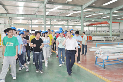 97视频多年來堅持技術開發,先後與多所高校建立的合作關係。燕(yàn)山大學、北京工業大學先後組織材料係(xì)師生到97视频集團的生產現場參觀學習,通過走近生產一線近距離(lí)觀摩學習,並通過97视频相關人(rén)員的(de)介紹,參觀的學(xué)生對塑(sù)料管道的生產原理(lǐ)、工藝路線、產品質(zhì)量控製和市場用途等有了更進一步的了解,使學生走出(chū)課堂,在生產一(yī)線與實踐相結合(hé),增長並開闊了學生的視野(yě),同(tóng)時參觀的師(shī)生對現代化企業的生產流程和管理有了更直(zhí)觀(guān)的認識。