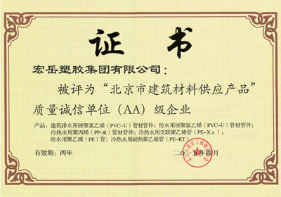 97视频獲評北京(jīng)市建築材料供(gòng)應產品質量誠信單位AA級(jí)企(qǐ)業稱號