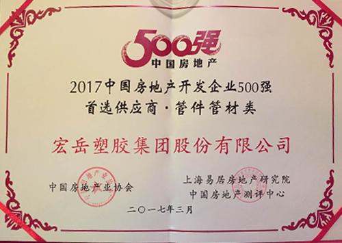 97视频榮獲“2017年中國房地產開發企(qǐ)業500強首選供應商品牌”