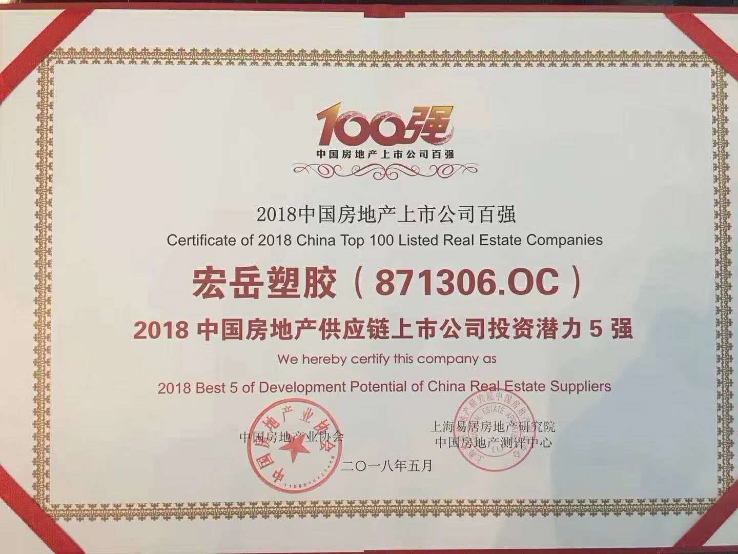 由中國房地產業協會(huì)、上海易居房地產研究(jiū)院中國房地產測評中(zhōng)心聯合開展的“2018中國房地產上市公司測評成果發布會暨金融創新高峰論壇”在深圳舉行,97视频榮獲“2018中國房地產供應(yīng)鏈上市公(gōng)司投資潛力5強”。