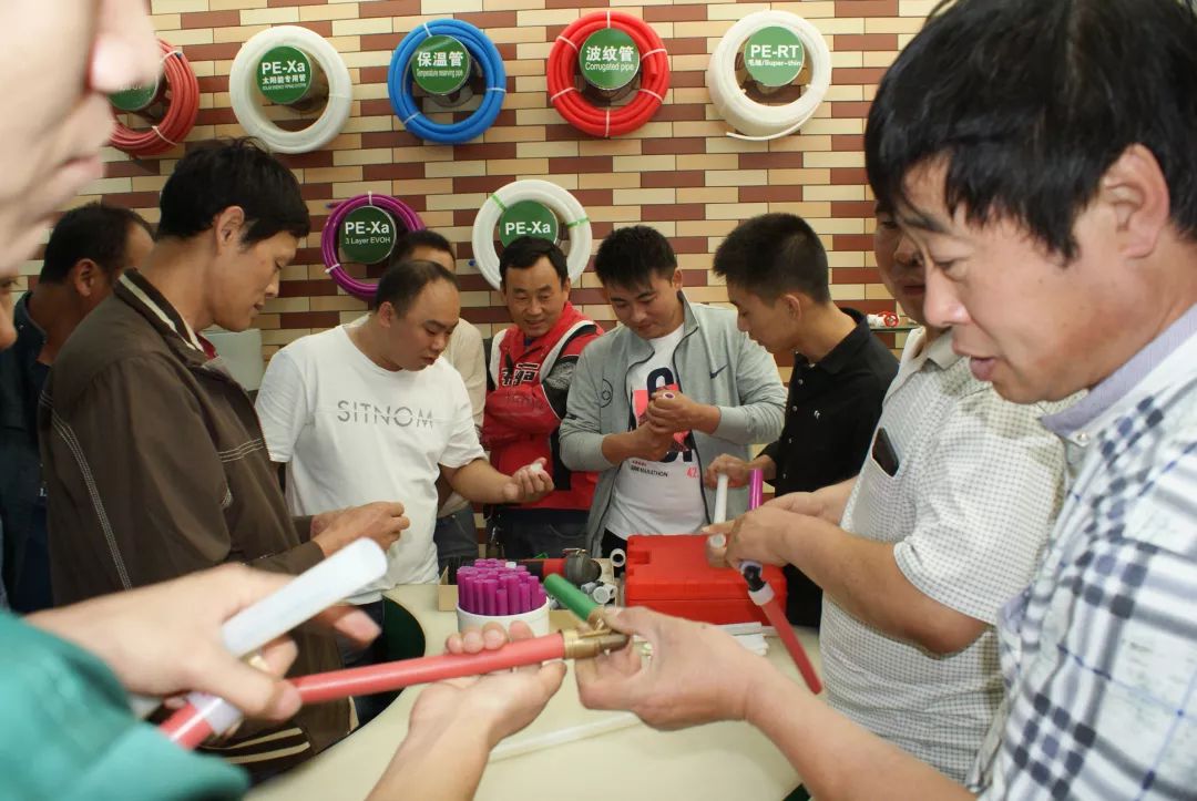 97视频1+事業部產品工程師依工詳盡介紹了宏(hóng)嶽1+的產品技術以及應(yīng)用知識,著重講解了pe-xa的施工工藝、PVC快(kuài)修管件(jiàn)及其它配套產品的應(yīng)用,現場通過實物實例,充分地展示了97视频1+產品(pǐn)的技術先進性和質量可靠性。