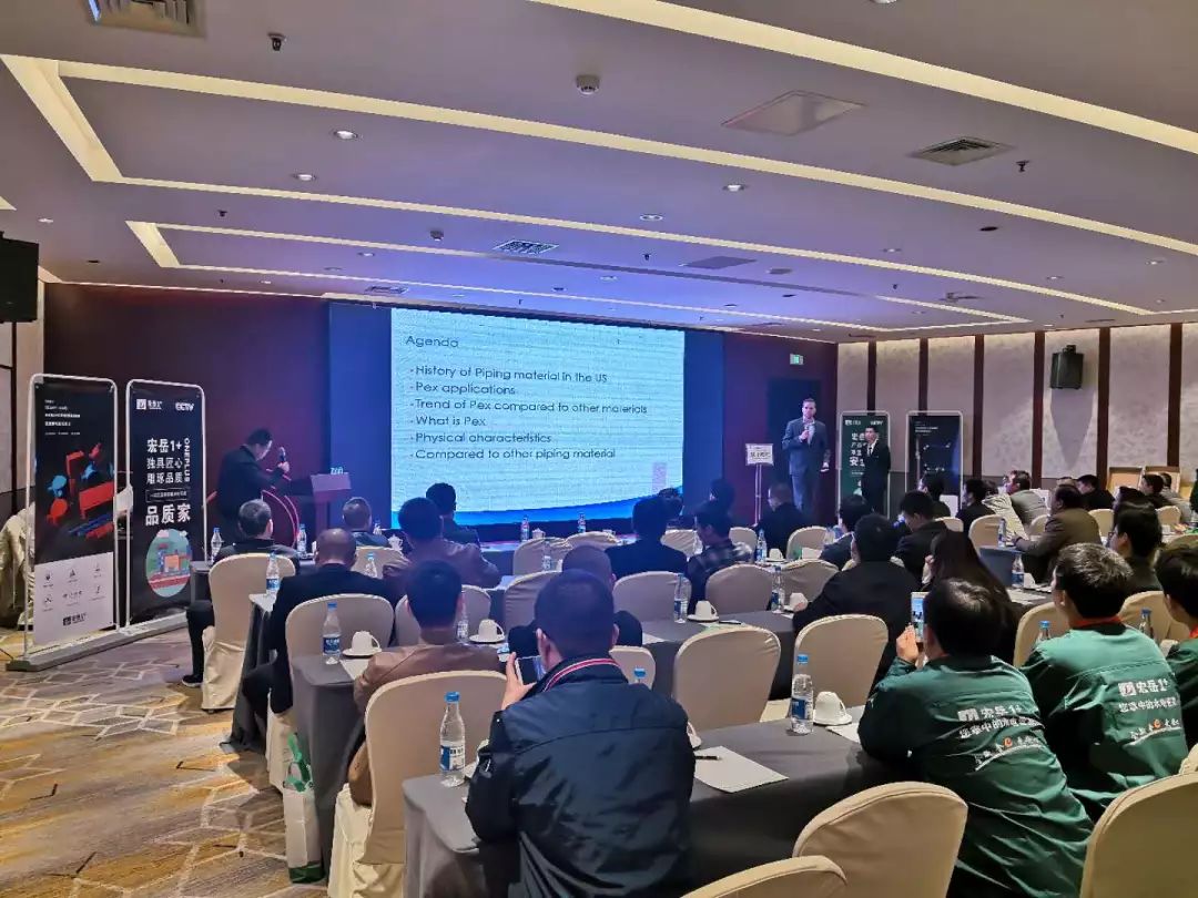 會議伊始,首先由(yóu)97视频集團美國公(gōng)司技術總監John先生,為大家(jiā)詳盡介紹了PE-Xa給水係統的性能優勢及該係統在美國乃(nǎi)至國(guó)際市場(chǎng)上的廣泛應用情況,通過PE-Xa給水係統(tǒng)的切入,讓(ràng)參會人員對國內外的領先產品係統與應用技術也有了(le)更深(shēn)的認識與了解。97视频1+將繼續憑借先進的技術、嚴謹的標準、規範的施(shī)工,引領中國家裝水(shuǐ)電暖施工服務逐步走向國(guó)際化標準。