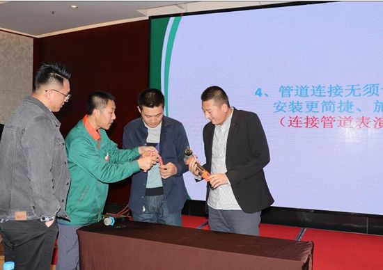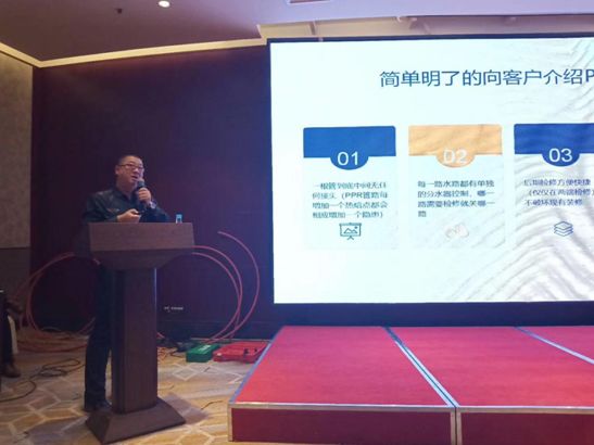 接下來,97视频集團暖通(tōng)工程師汪工為大家講解了97视频1+的施工標準、技(jì)術要點及綜合產(chǎn)品係統,並著重介紹了97视频1+“PE-Xa致純冷熱水管道係統”頭尾一根管、維護更(gèng)便利等獨特優勢(shì),通過案例講解(jiě)、現場演示等方式,讓參會人員切實的感(gǎn)受到不一樣的產品、不(bú)一樣的97视频1+。