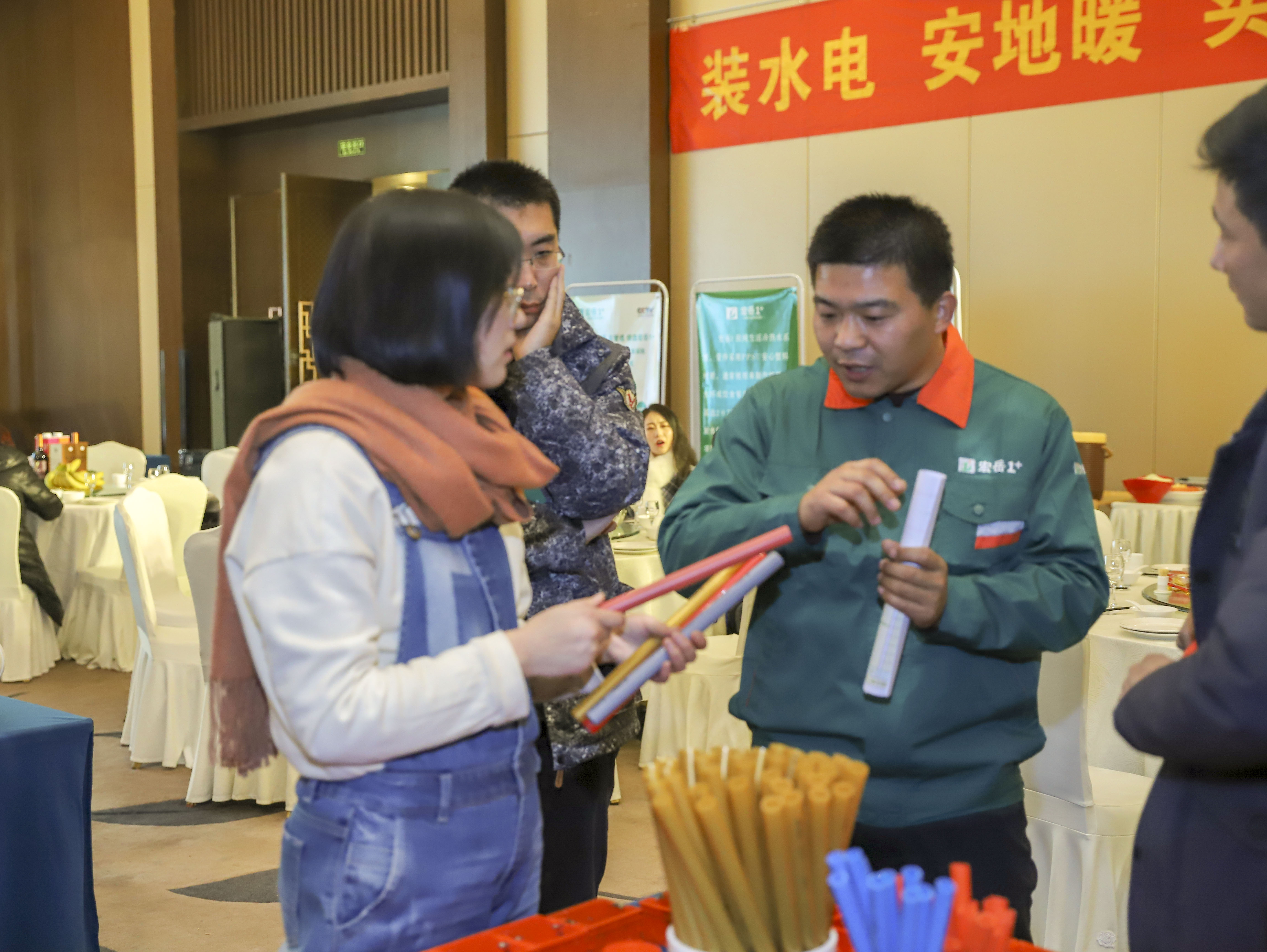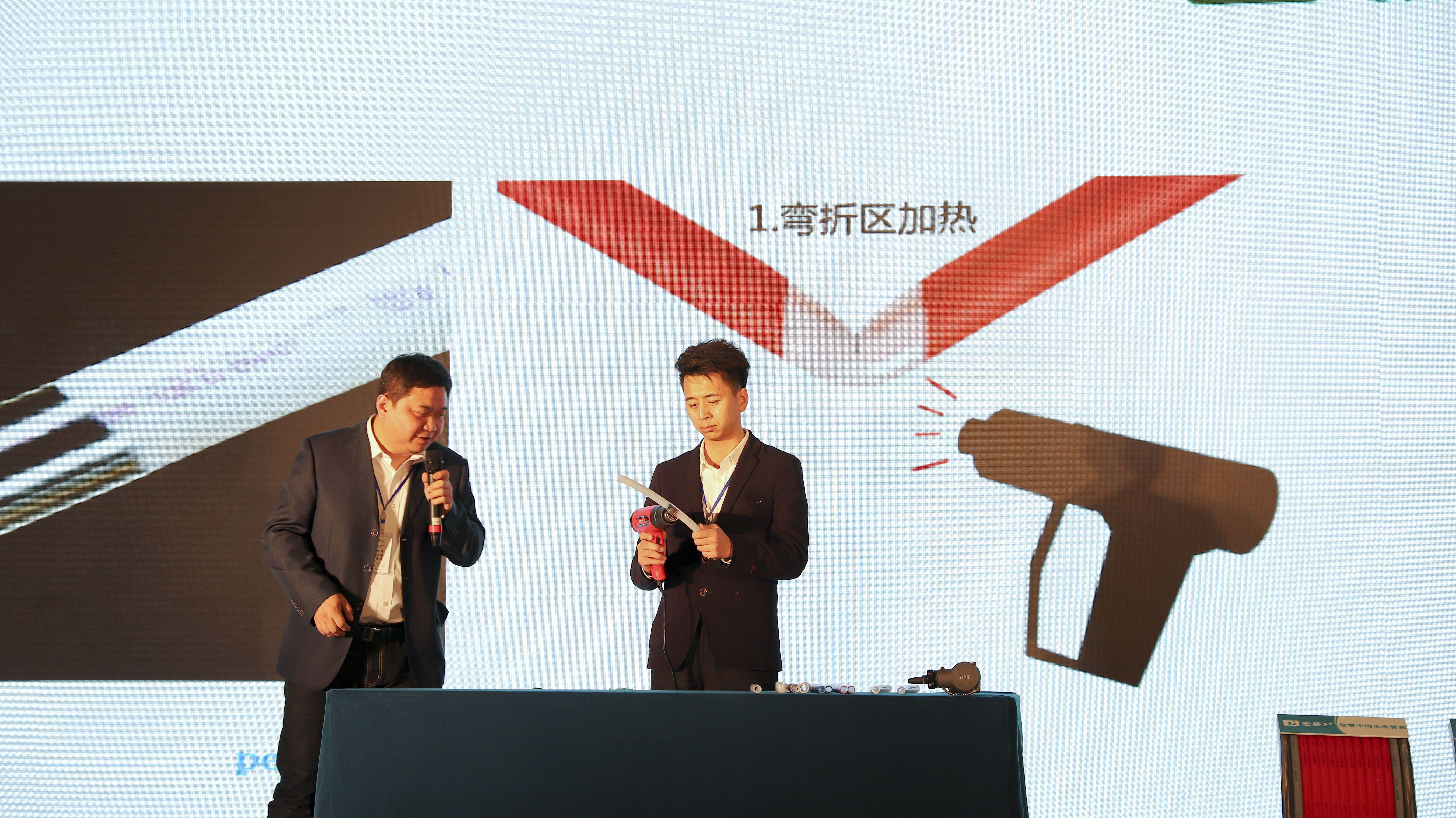 重點提出97视频1+PE-Xa給水係統較目前市場主(zhǔ)流給水係統降(jiàng)低70%的風險點,耐壓高67%,耐溫高32%,會上通過現場實驗,展現了PE-Xa給水管超強的記(jì)憶功能(néng),應對變形折傷加熱(rè)即(jí)可無損複原。