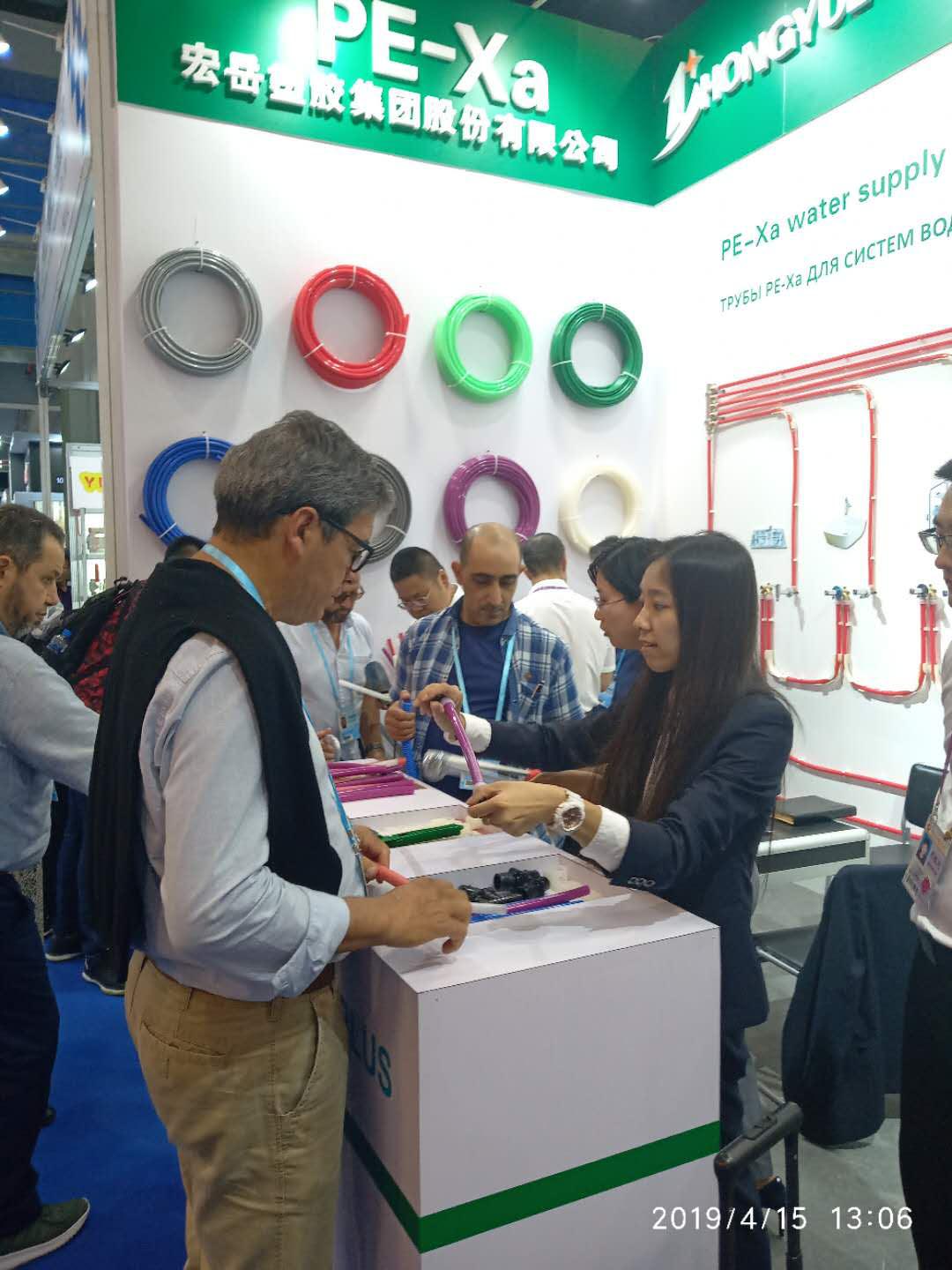 97视频展位前人潮攢(zǎn)動,絡繹不絕(jué),來自世界各國的采購商對宏(hóng)嶽參展產品表現出了濃(nóng)厚的興趣,紛紛駐足了解97视频產品,最吸(xī)引各國(guó)客商目光的是PE-Xa給水係統。