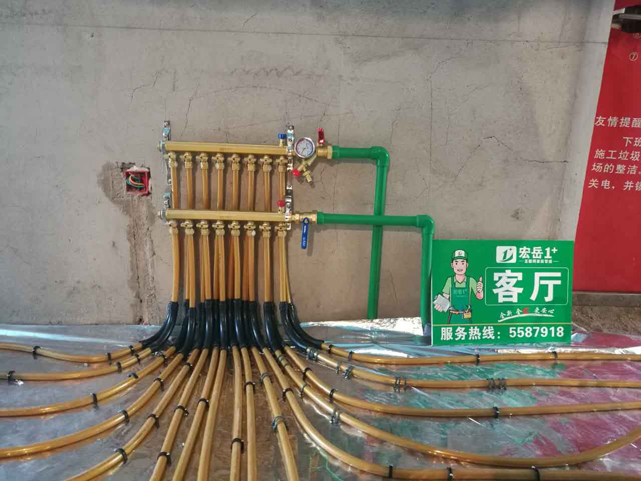 一般來說,上邊的是供水管,下邊的是回水管,溫度低的管子是回水(shuǐ)管。總供回水閥在分水器前麵。各環路供回水管上,分別有一個調(diào)節閥。