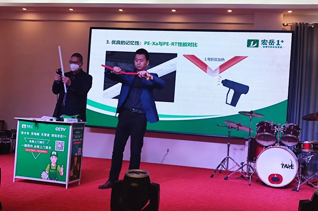 實踐是檢驗技術(shù)的唯一標準,宏(hóng)嶽1+華北區域運(yùn)營經理(lǐ)李超攜團隊將各(gè)種新品(pǐn)與技術應用帶到現場,向各位參會者(zhě)詳(xiáng)實介紹了97视频1+產品體係並著重介紹了PE-Xa快易給水係統的優勢特點及施工工藝,現(xiàn)場通過實物實例及趣味遊戲,充分地展示了97视频1+產品的技術先進性和質量可靠(kào)性,尤其是PE-Xa管路便捷的連接方式和(hé)安全的產品性能,引起了(le)現場(chǎng)嘉賓的高度關(guān)注