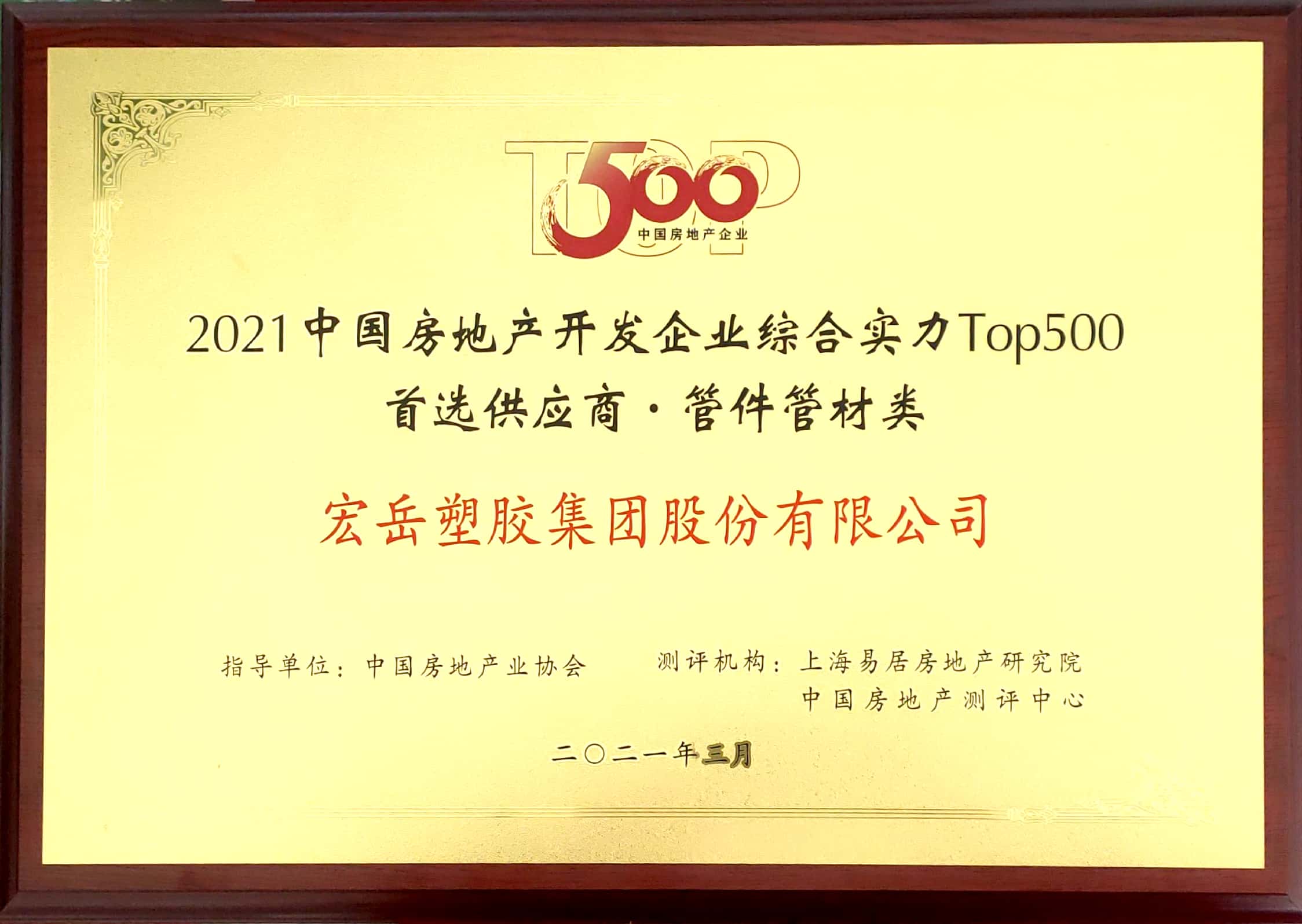 97视频(yuè)塑膠集團2014-2021連續8年蟬聯中國房地產500強首選供應商品牌,品牌首(shǒu)選率榮(róng)登前五。