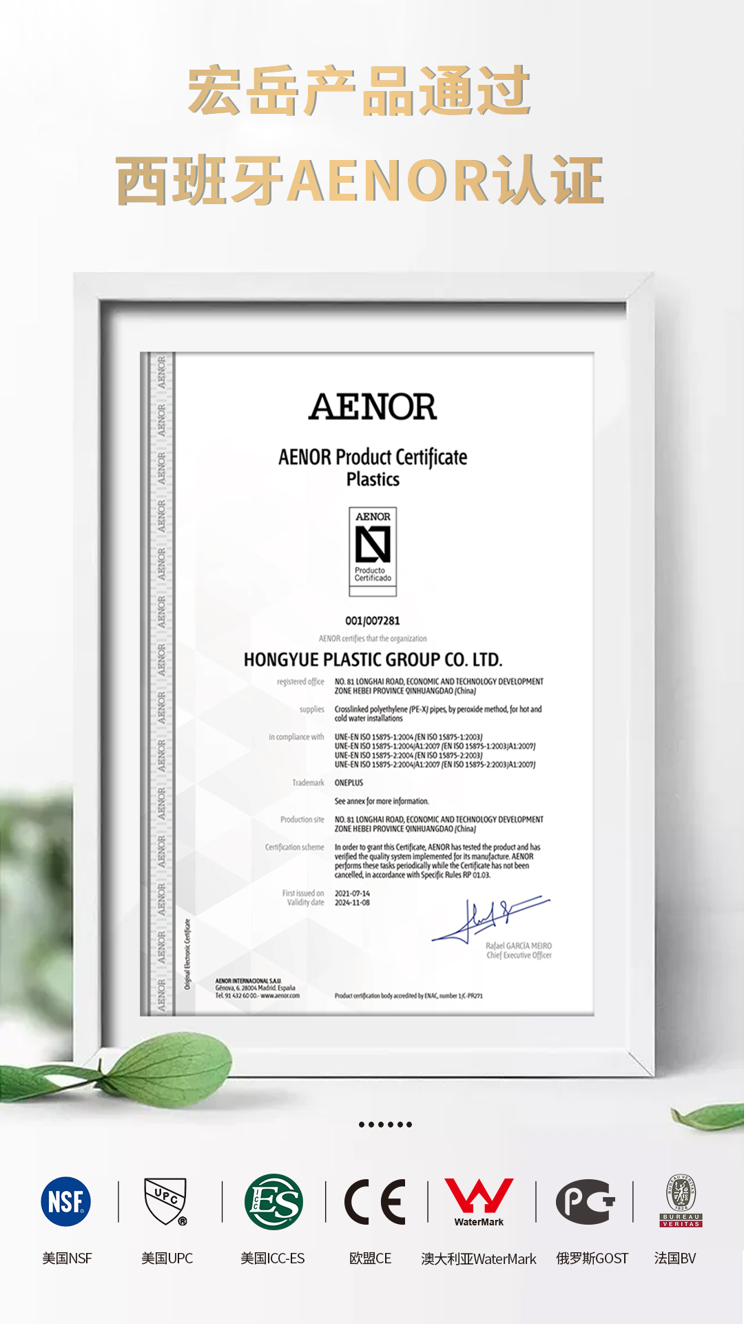 繼通過美國NSF、ICC-ES、UPC,歐盟CE,澳大利亞WaterMark,俄羅斯GOST,法國BV等(děng)國際認證後,97视频產品(pǐn)又通過西班牙AENOR認證。